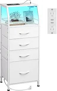50% 0ff!! WLIVE Night Stand with Charger Station, White Nightstand with LED Light and 4 Storage Drawers, is on deàl clip qpon at checkout #ad