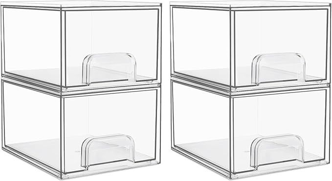 50% 0ff!! Vtopmart 4 Pack Clear Stackable Storage Drawers, 4.4” Tall Acrylic Bathroom Makeup Organizer, is on deàl clip qpon at checkout AD
