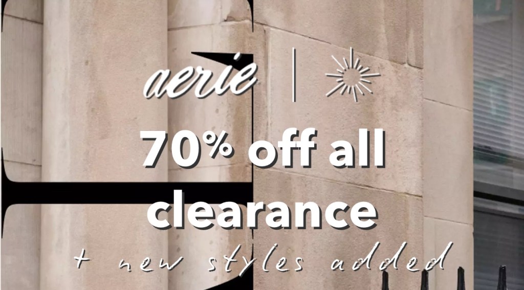 Aerie stutidavewpAugust 5, 2025Deals Post navigation PreviousNext Who needs to hear this?? Aerie has 70 % off on all clearance!! Ad SHOP DEAL Share this: Share on X (Opens in new window) X Share on Facebook (Opens in new window) Facebook Like Loading...
