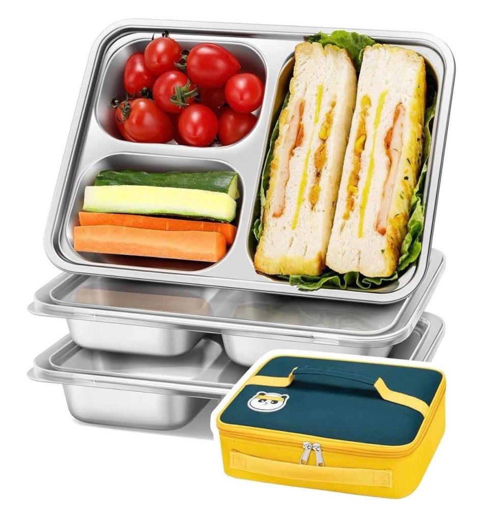 Wow this is cool! π Itβs a 3 pack stainless steel with lids, AND it also comes with the cute little lunch bag! Total value!! Ad
