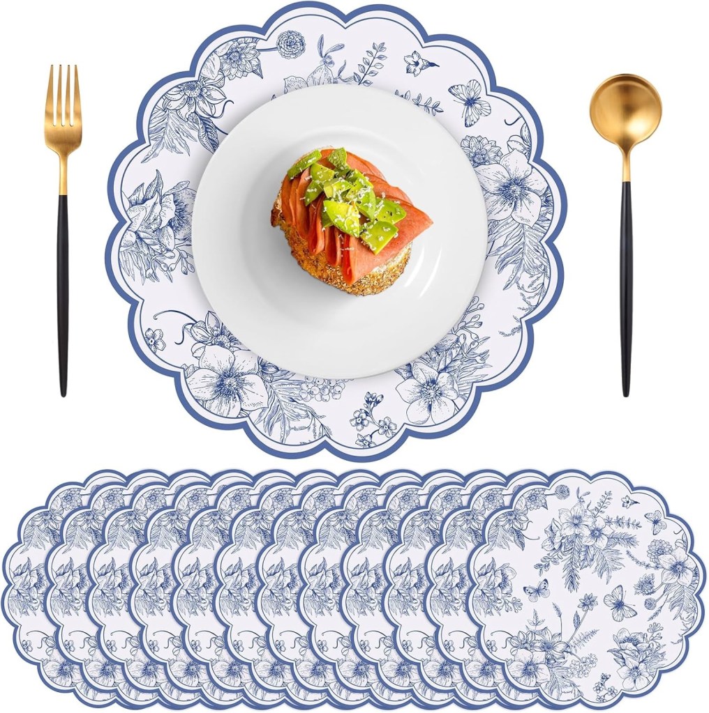 ✨These scalloped floral paper placemats are such a pretty and inexpensive way to decorate your table! Perfect for parties, baby showers, wedding receptions, or any special gathering 💐✨