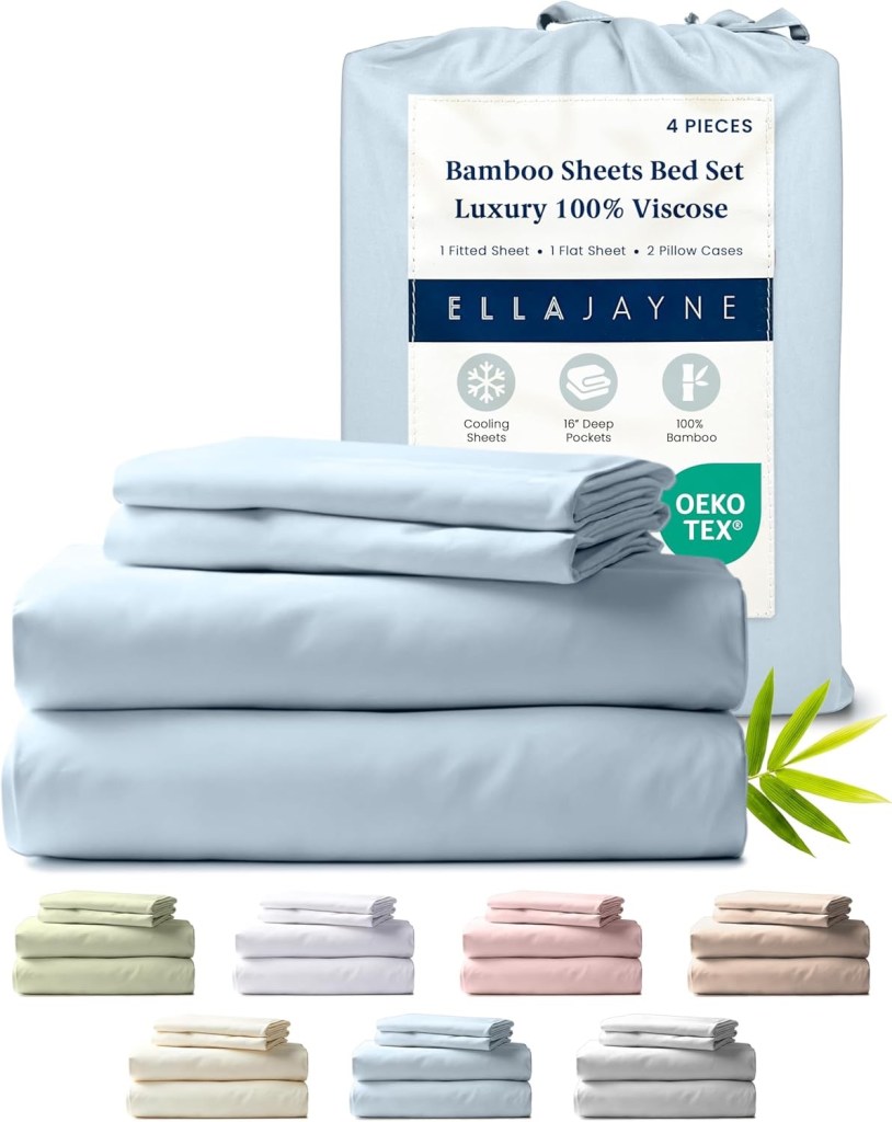I’m a hot sleeper and so I have to use bamboo sheets because they keep me cool all night long. This 4pc. Queen set is on a de@l for 69.99 (Reg. 101.99)! Ad