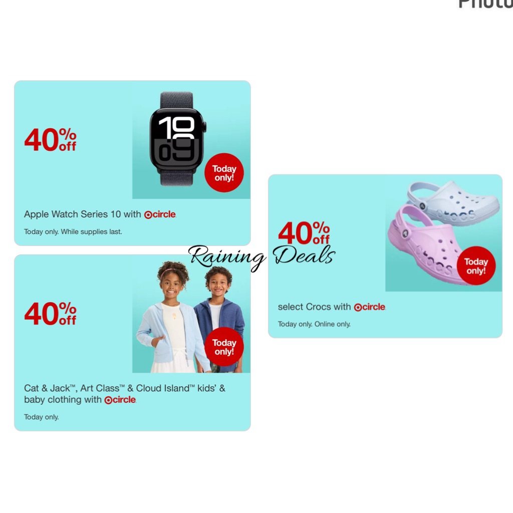 🚨 T🎯RGET DROP!! Circle Week is HERE and they did NOT come to play 😍 TODAY ONLY — 40% OFF kids’ faves (Cat & Jack, Art Class, Cloud Island), select Crocs, AND Apple Watch Series 10! 🔥 Who’s running?? 👟💨 (ad)
