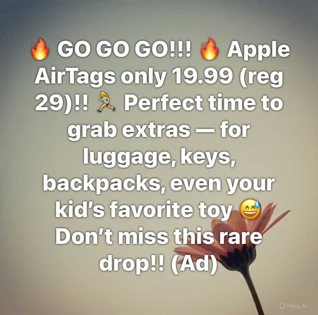 π₯ GO GO GO!!! π₯ Apple AirTags only 19.99 (reg 29)!! πββοΈ Perfect time to grab extras β for luggage, keys, backpacks, even your kidβs favorite toy π Donβt miss this rare drop!! (Ad)