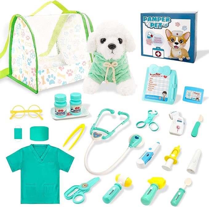 Cutest gift idea EVER!! π Little docs will LOVE this play set β it even has a plush puppy patient πΆ Grab it for 16.xx after qpon! π©Ί So much pretend play fun β been there, done that, and itβs a hit!!(ad)
