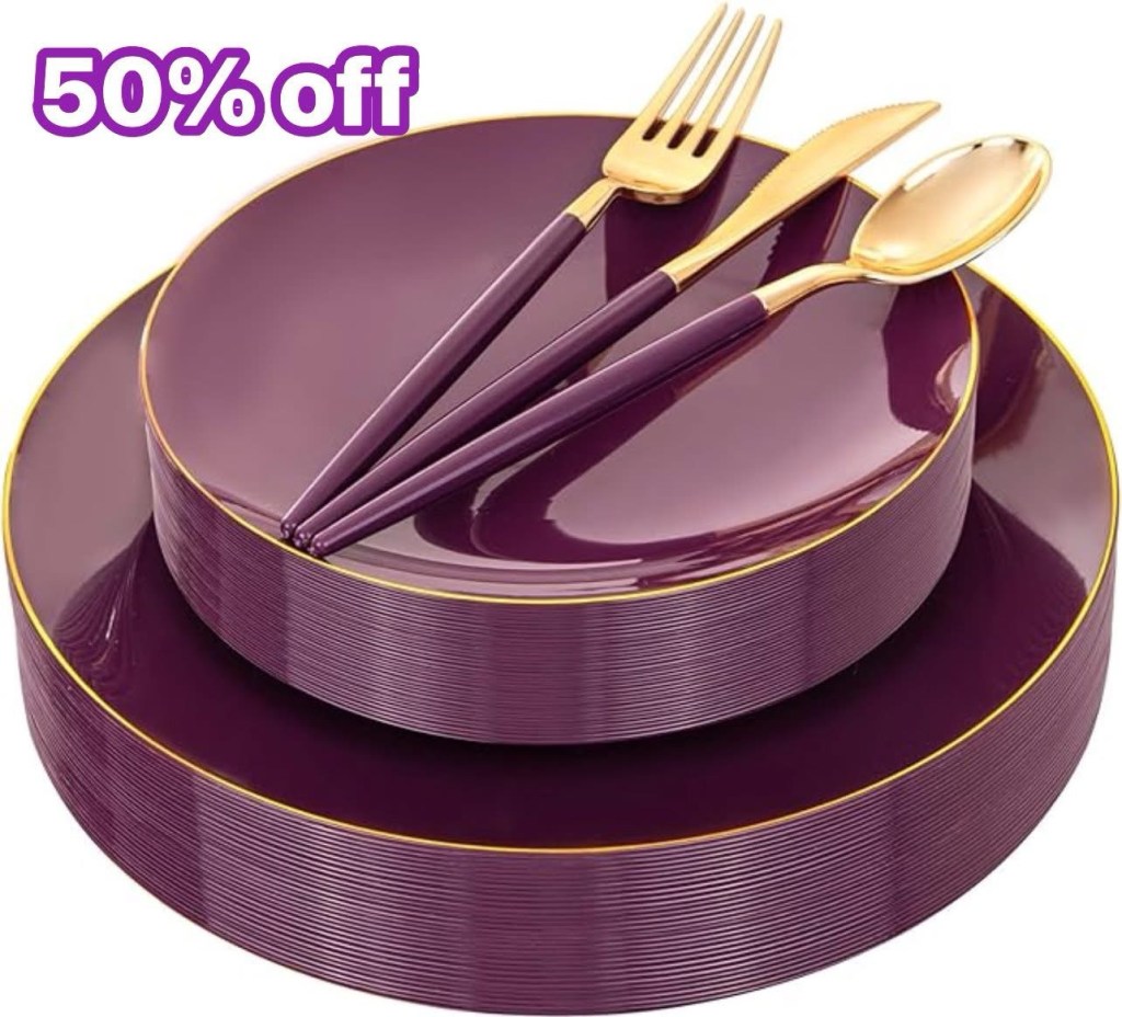 Hosting made easy (and stunning!) β¨ These 150PCS purple + gold dinner sets look SO luxe π