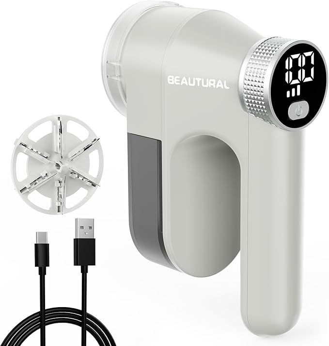 34% 0ff!! BEAUTURAL Fabric Shaver, Rechargeable Lint Remover, Electric Portable Sweater Defuzzer with 3 Speeds, AD