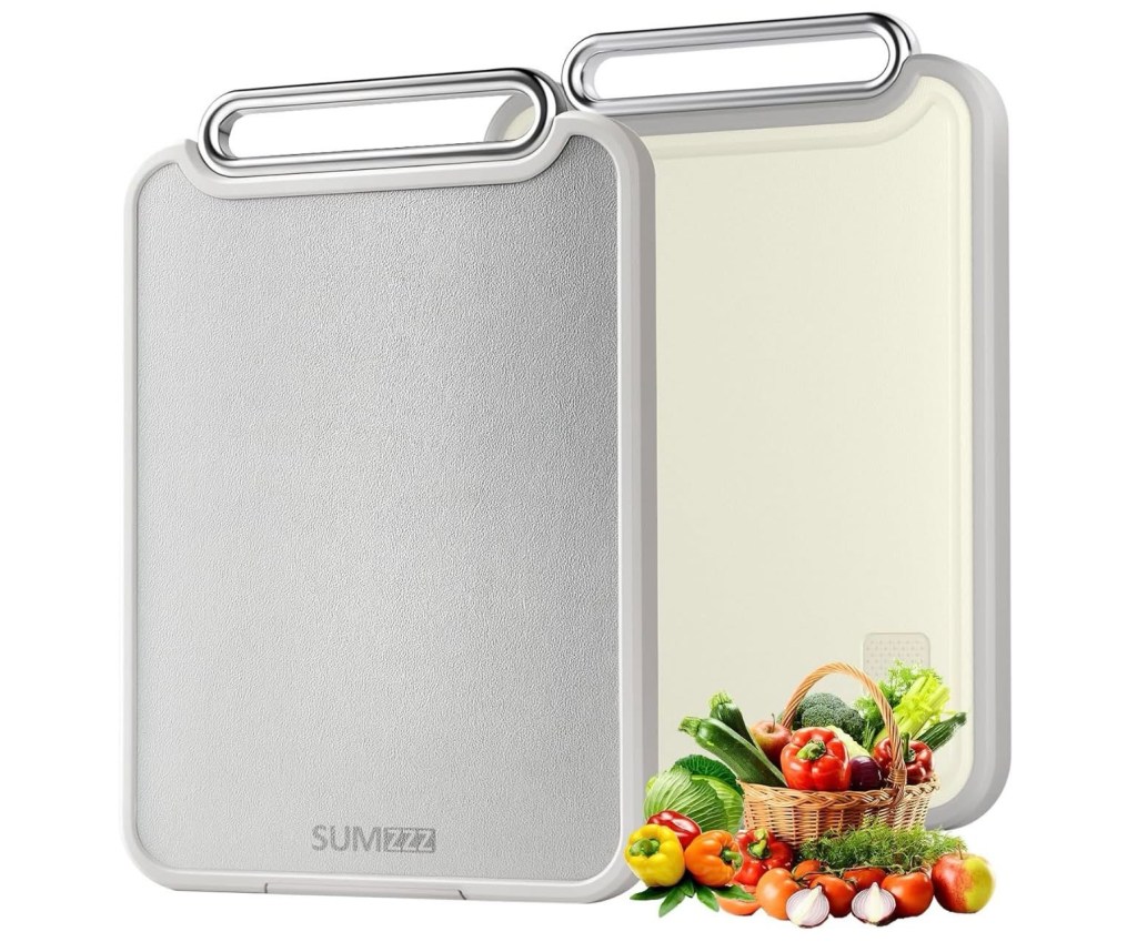 This Double-Sided Stainless Steel Cutting Board is 12.49 with code S2EFB3HQ at checkout! One side is perfect for meats and the other for fruits and vegetables–a great upgrade from a plastic or wooden board! Ad