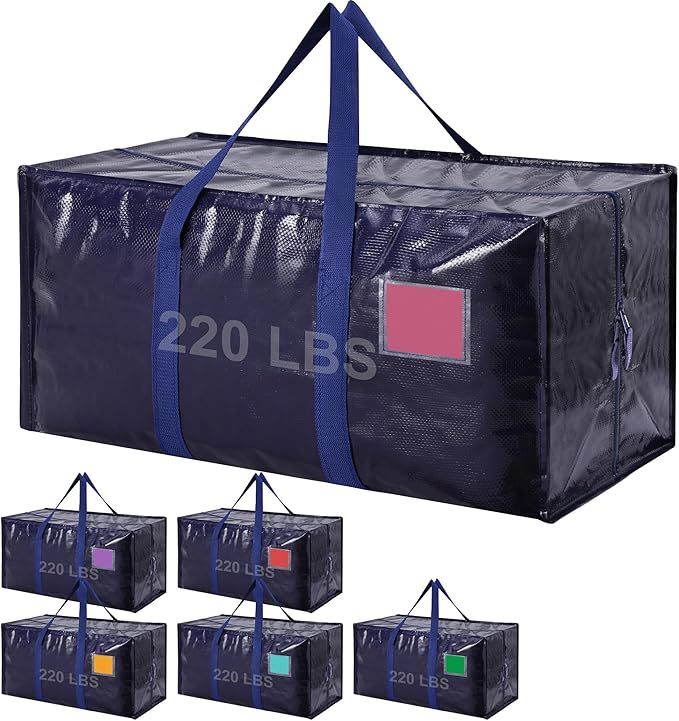 40% 0ff!! 6 Pack Extra Large Heavy Duty Moving Bags with Reinforced Zipper & Wide Handles, Moisture-Resistant Storage Bins Packing Cubes for Clothes, AD