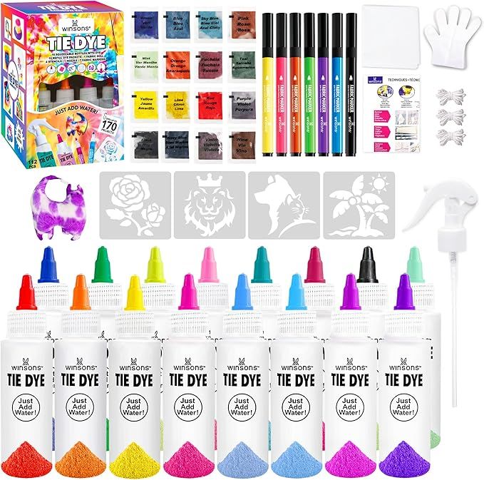 50% 0ff!! 16-Color Tie Dye Kit for Kids & Adults – Includes Fabric Markers, Pre-Filled Dye Bottles, Refills, Stencils, Mini Doll & Nozzle AD