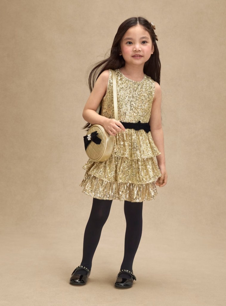 This Royal Christmas metallic dress is pure magic β sequins, shimmer & the sweetest bow! π