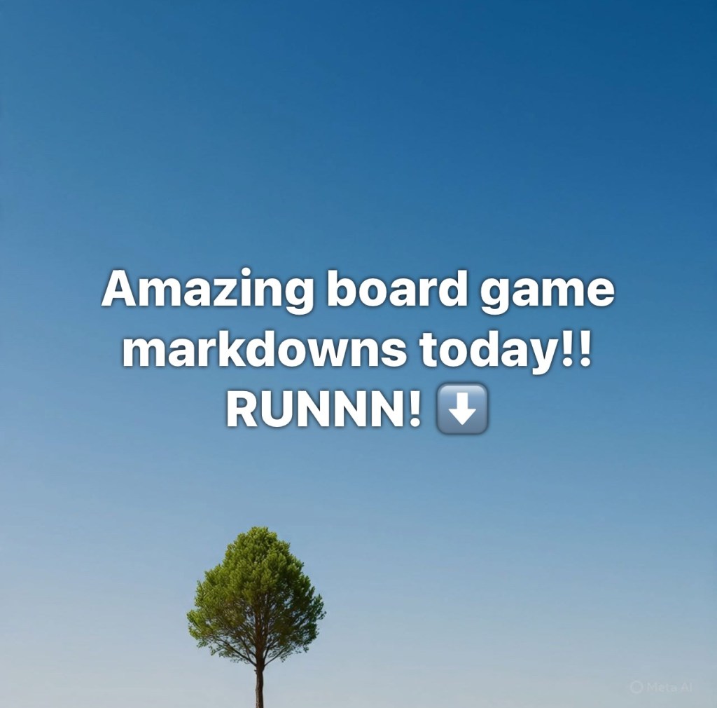 Board Games stutidavewpNovember 15, 2025Amazon, Deals Post navigation PreviousNext Huge board game markdowns today!! RUNNN! ⬇️ DEAL Share this: Share on X (Opens in new window) X Share on Facebook (Opens in new window) Facebook Like Loading...