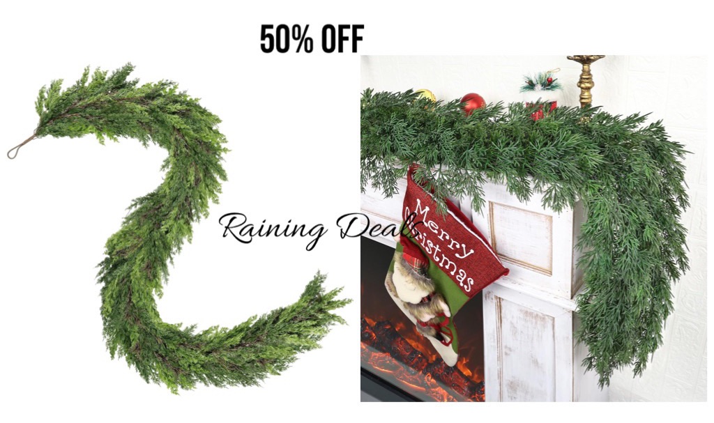 🌲✨ This realistic pine cedar garland is dropping by HALF with our link! Perfect for mantles, stair rails, anywhere you want those cozy Christmas vibes!! Ad