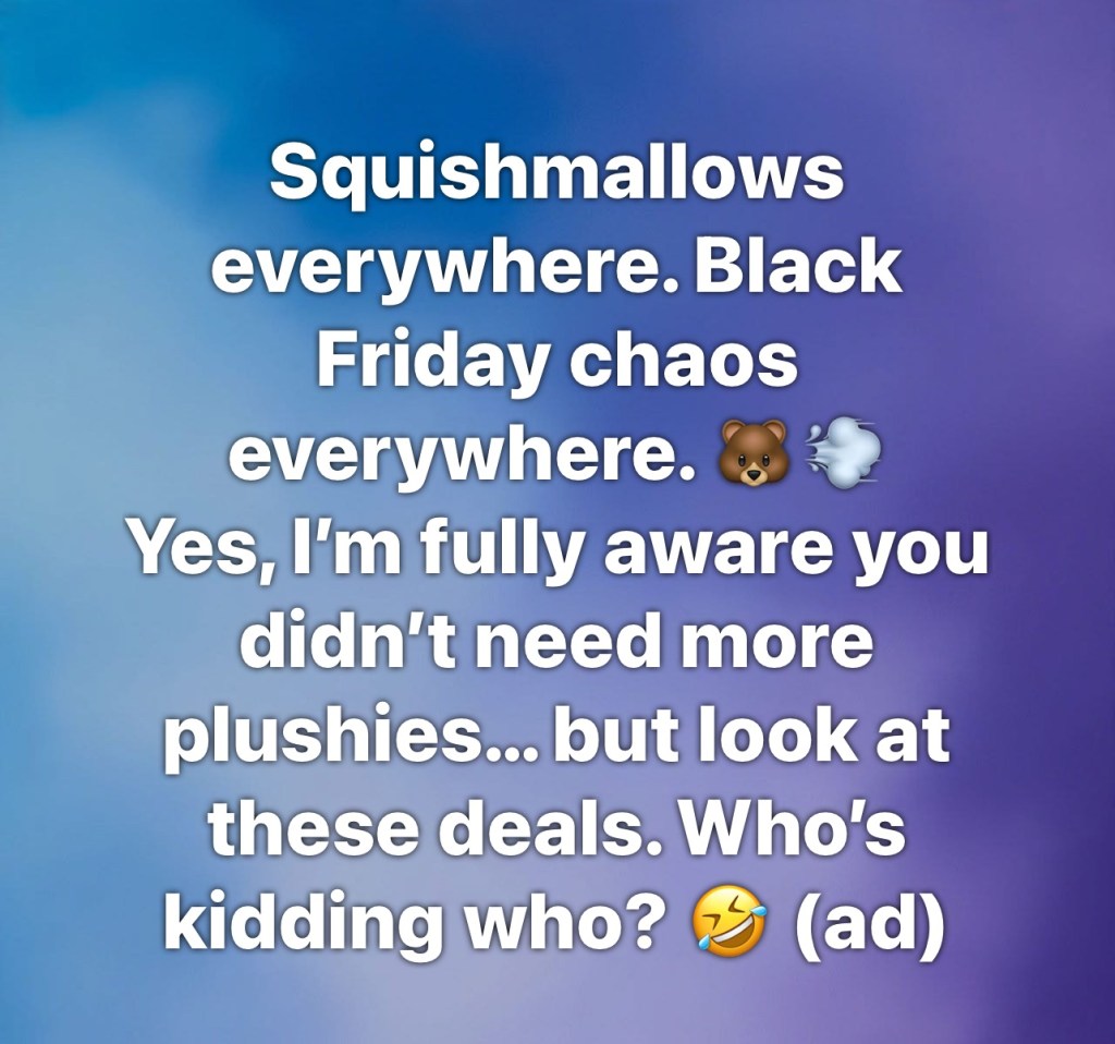 Squishmallows everywhere. Black Friday chaos everywhere. 🐻💨 Yes, I’m fully aware you didn’t need more plushies… but look at these deals. Who’s kidding who? 🤣 (ad)