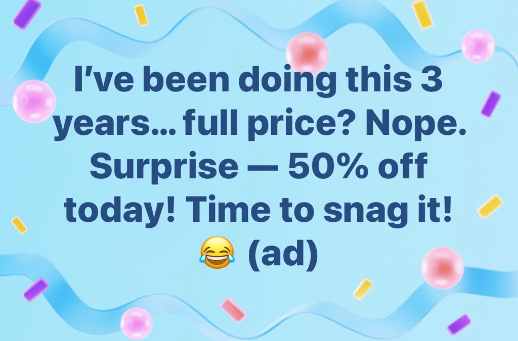 Half priced stutidavewpNovember 23, 2025November 23, 2025Amazon, Deals Post navigation PreviousNext I’ve been doing this 3 years… full price? Nope. Surprise — 50% off today! Time to snag it! 😂 (ad) DEAL Share this: Share on X (Opens in new window) X Share on Facebook (Opens in new window) Facebook Like Loading...