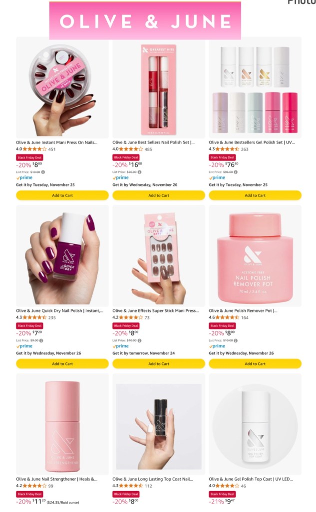 Olive & June stutidavewpNovember 23, 2025Amazon, Deals Post navigation PreviousNext Canβt get enough of Olive & June! π Grab your favorites in the BF sale now! Ad DEAL Share this: Share on X (Opens in new window) X Share on Facebook (Opens in new window) Facebook Like Loading...