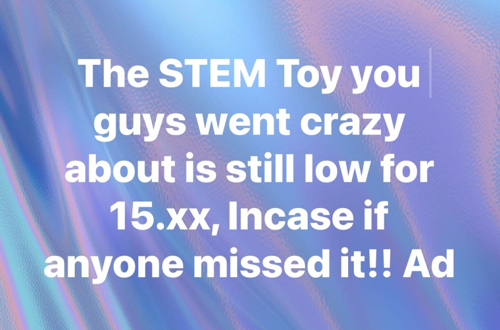 Ummm HELLOOOO?! π³ The STEM toy I paid MORE for two weeks ago is now $15.xx π©πΈ If you donβt RUN πββοΈπ¨ and grab it, idk what to tell you!! π₯π₯ ad