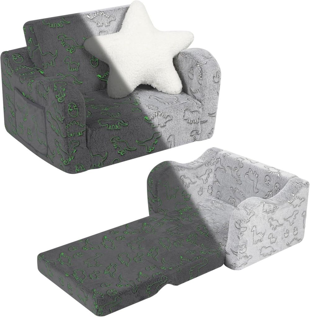 42% 0ff!! Toddler Couch, 2-in-1 Kids Soft Couch Fold Out with Star Pillow, Foldable Sofa to Lounger, 1-Seat, Glow in The Dark AD