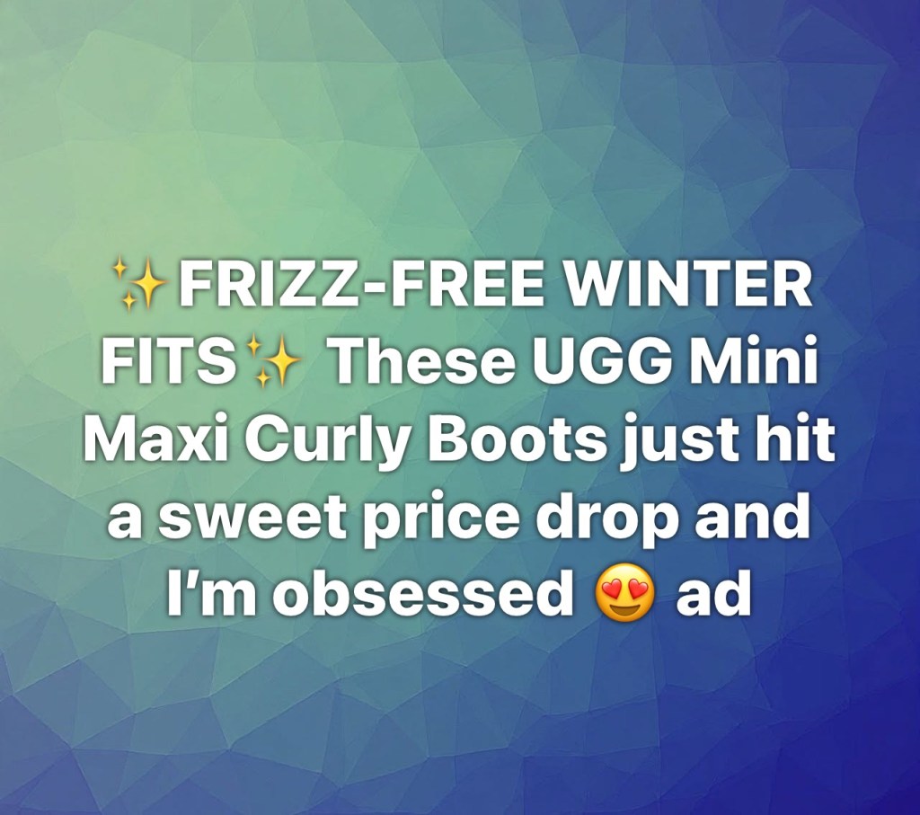 Uggs mini stutidavewpNovember 26, 2025Amazon, Deals Post navigation PreviousNext ✨FRIZZ-FREE WINTER FITS✨ These UGG Mini Maxi Curly Boots just hit a sweet price drop and I’m obsessed 😍 ad DEAL Share this: Share on X (Opens in new window) X Share on Facebook (Opens in new window) Facebook Like Loading...