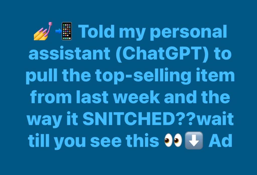 💅📲 Told my personal assistant (ChatGPT) to pull the top-selling item from last week and the way it SNITCHED??wait till you see this 👀⬇️ Ad