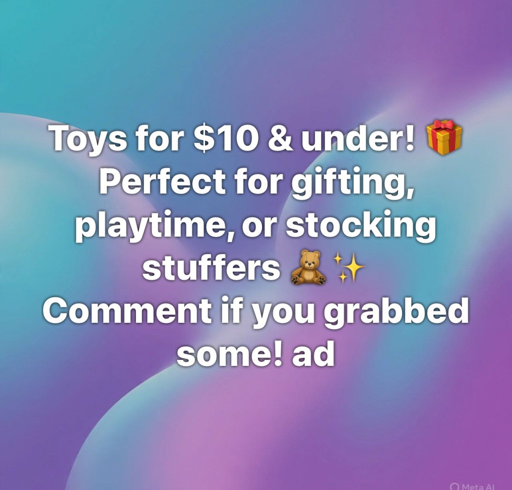 Toys for under $10 stutidavewpDecember 16, 2025Amazon, Deals Post navigation PreviousNext DEAL Share this: Click to share on X (Opens in new window) X Click to share on Facebook (Opens in new window) Facebook Like Loading...