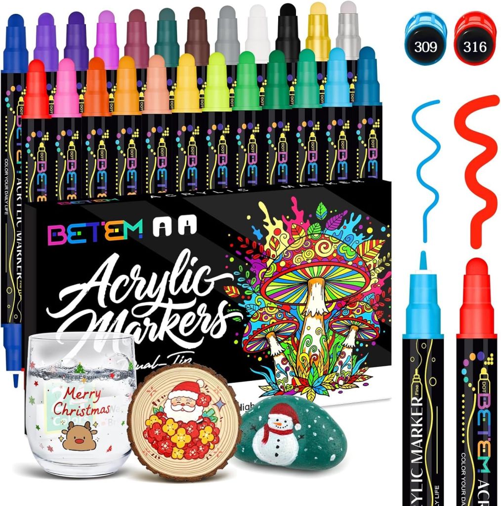 36% 0ff!! Betem 24 Colors Dual Tip Acrylic Paint Pens Markers, Premium Acrylic Paint Markers Stocking Stuffers AD