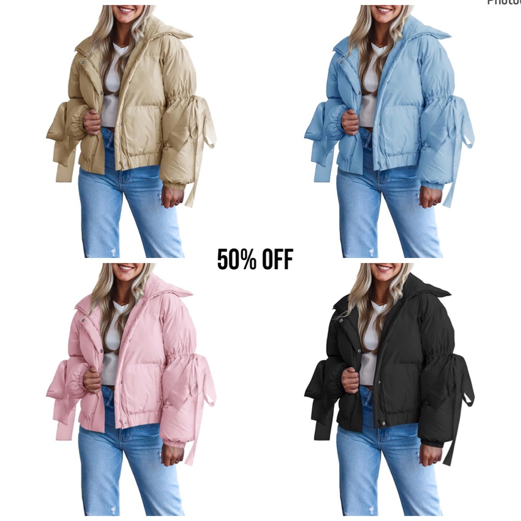 Cutest little bow puffs EVER are HALF OFF today with our link! Warm, fluffy, and girly perfection 🥰