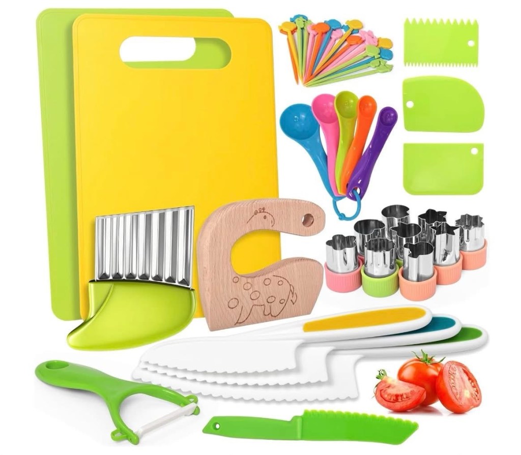 Under $8 😱❄️ A 46-piece kids cooking set with SAFE knives for real kitchen fun! Perfect for snowy days and little helpers 👏🏻 AD