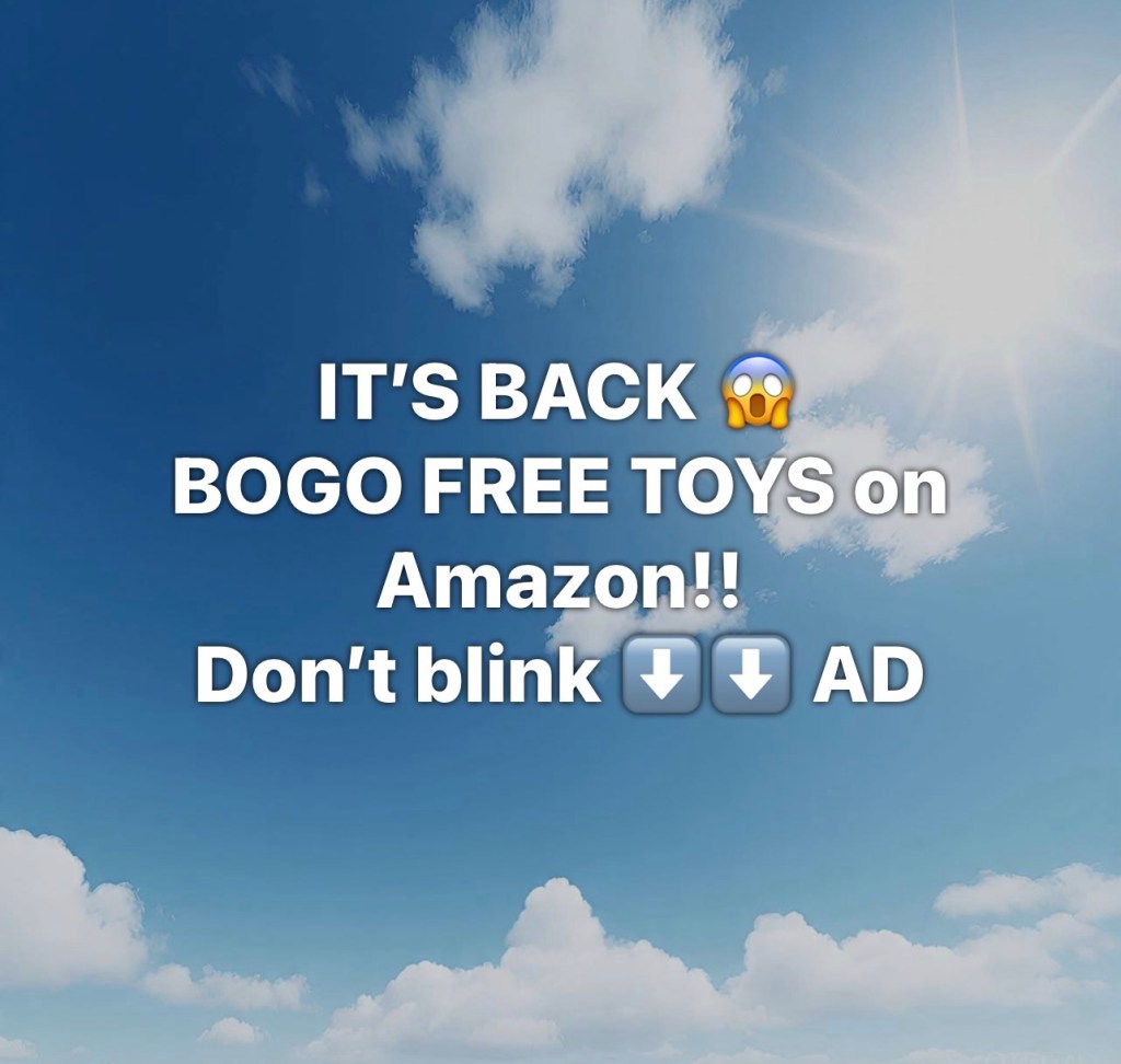 Bogo Toys stutidavewpJanuary 29, 2026Amazon, Deals Post navigation PreviousNext IT’S BACK 😱BOGO FREE TOYS on Amazon!! Don’t blink ⬇️⬇️ AD DEAL Share this: Share on X (Opens in new window) X Share on Facebook (Opens in new window) Facebook Like Loading...