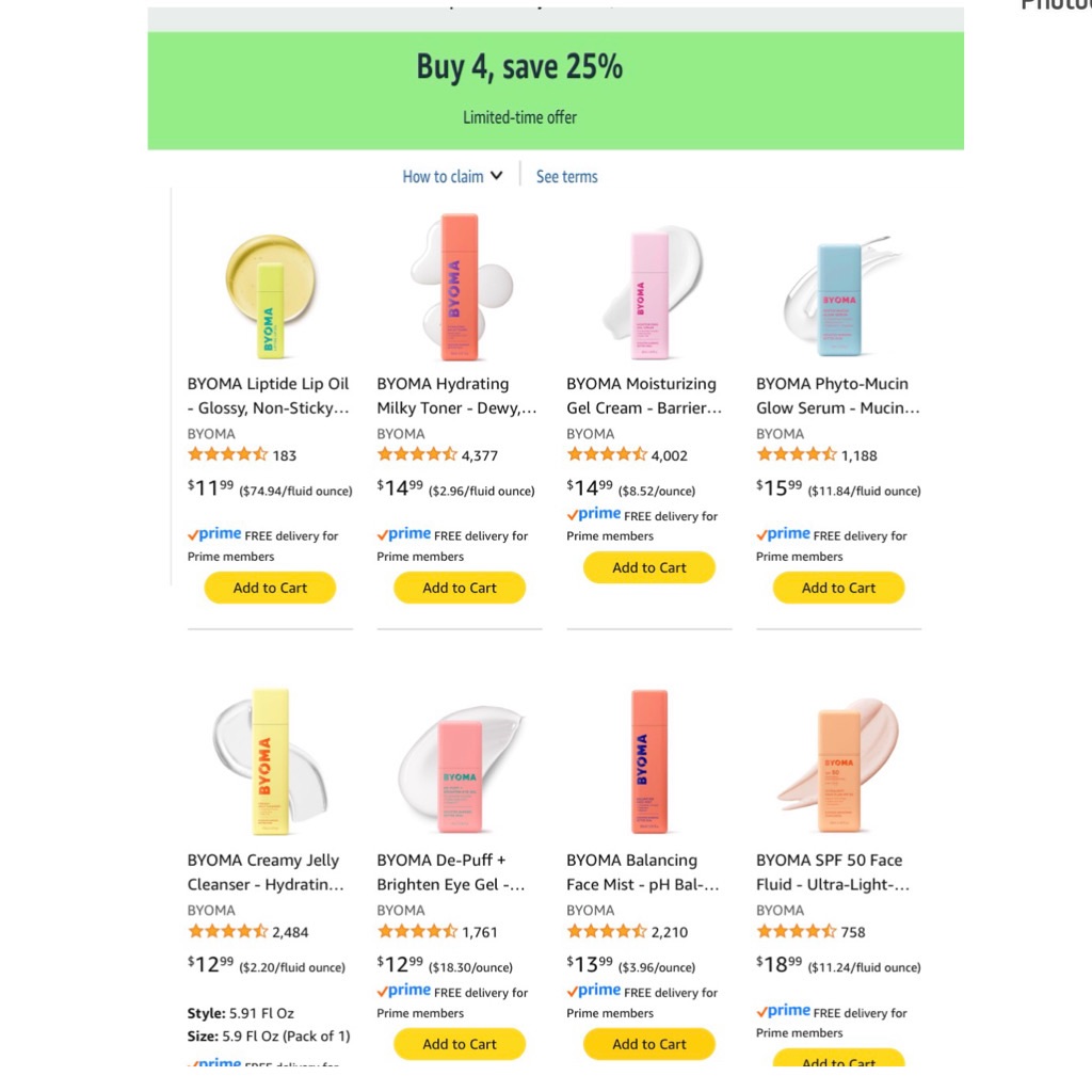 BYOMA essentials on limited-time Buy 4 Save 25% 😱 One for AM, one for PM, one for backup, one just because 😌✨ad