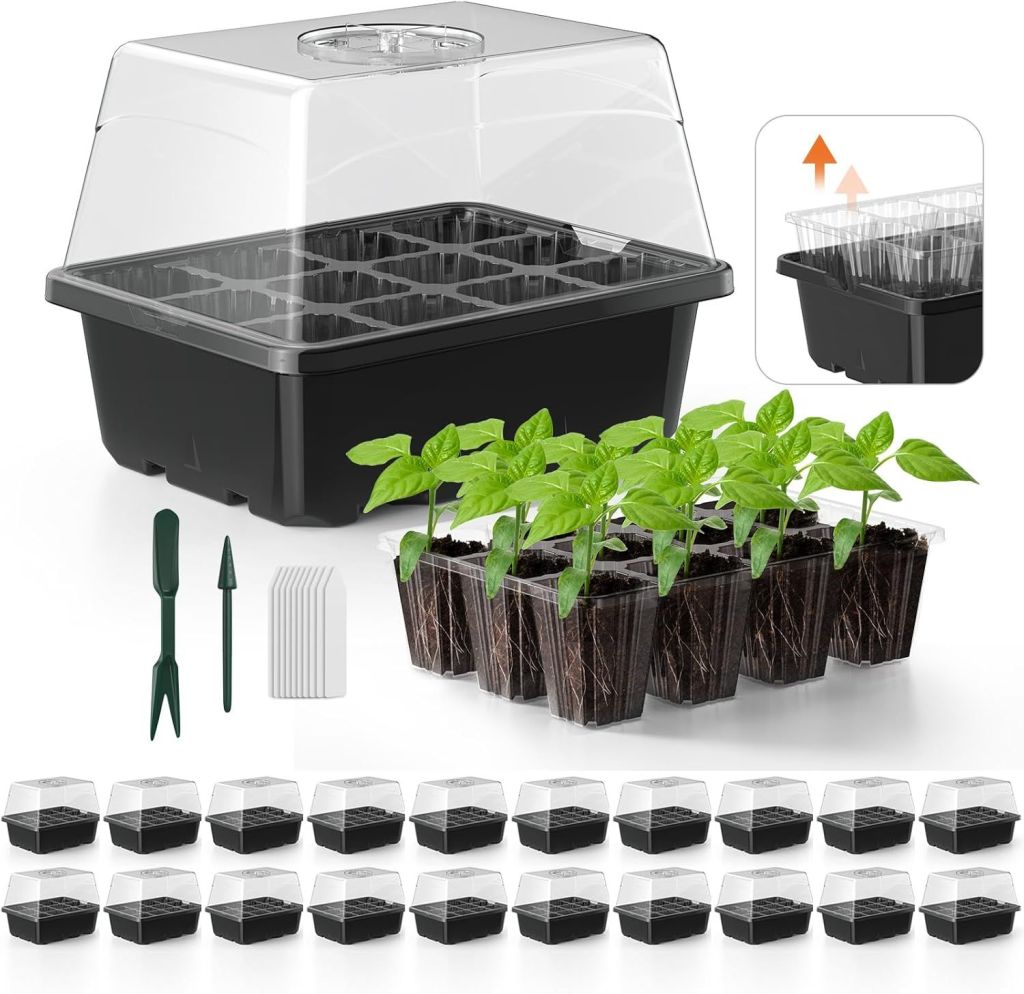 50% 0ff!! Seed Starter Tray, 20PCS Seed Starter Kit, Seedling Starter Trays with Heightened Lids for Seed Staring, AD