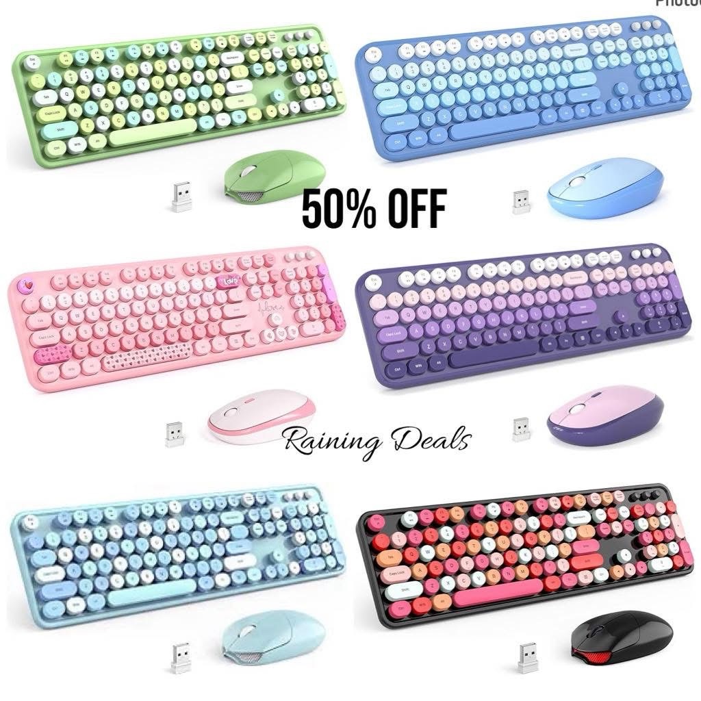Click-clack heaven 😍 These wireless mechanical typewriter-style keyboards + mouse sets are 50% OFF!! Bring vintage vibes to your desk 💕💻 AD