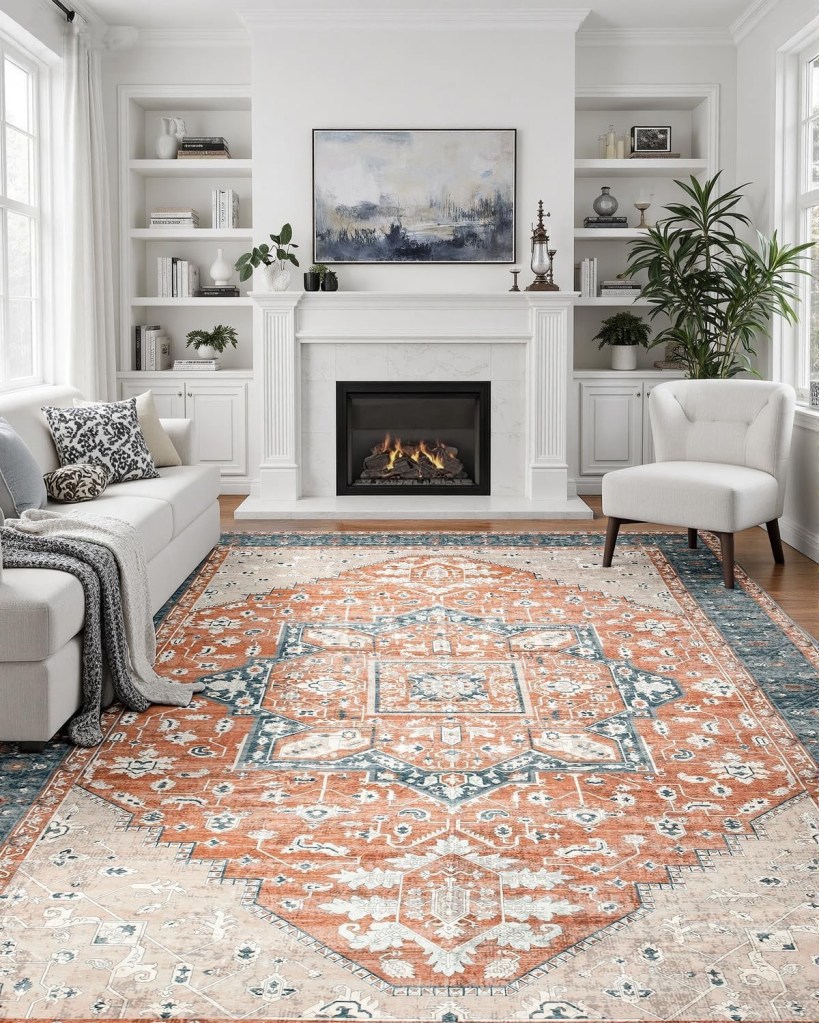 This washable rug is giving ✨high-end✨ without the high price 😍🖤 Love the look… love the price even more!!!🔗👇💬 AD