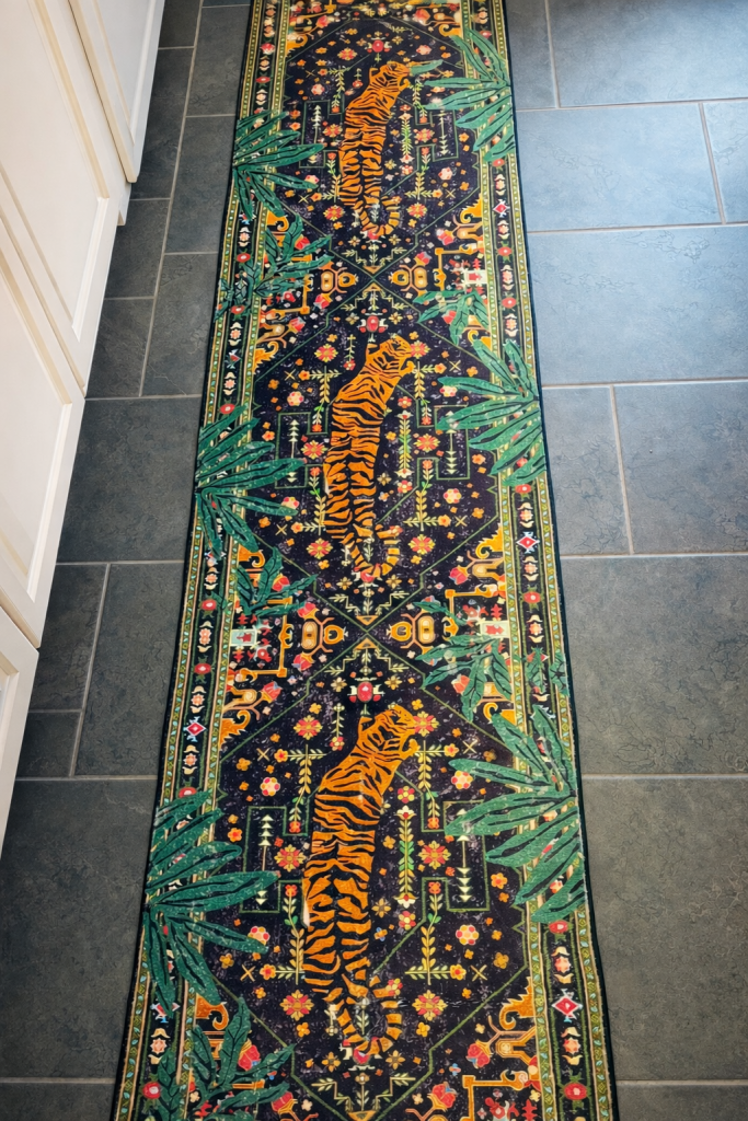 I feel my bathroom suddenly looks like a designer hotel suite? 🐅✨ The rich colors and the bold pattern instantly elevated the whole space. It’s giving curated, collected, high-end energy. (Ad)
