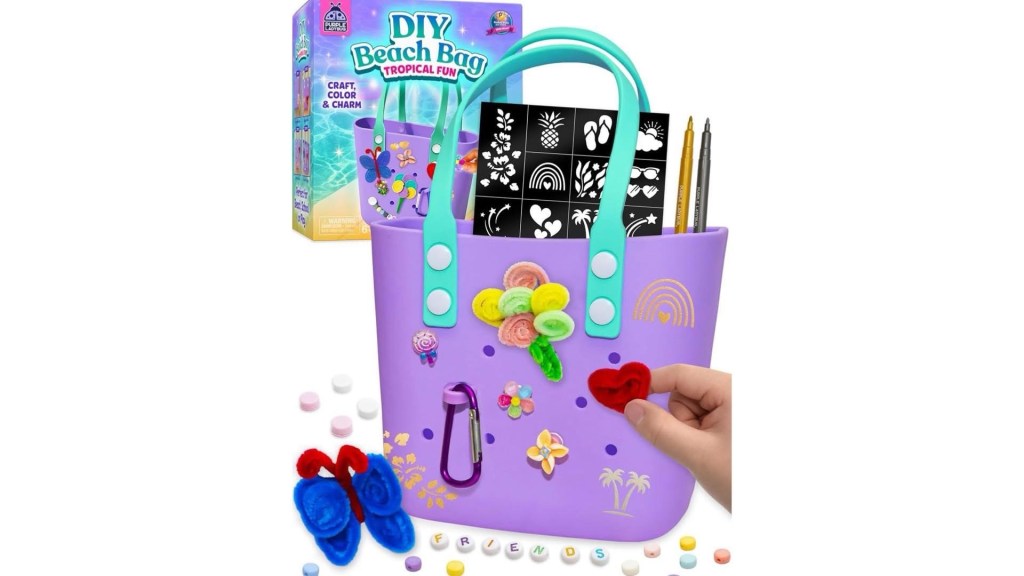 🏖️ This is SUCH a fun activity for kids!! 🎨 DIY Decorate Your Own Beach Tote Bag just dropped and it comes with charms, stencils, and markers to design your own bag! Ad