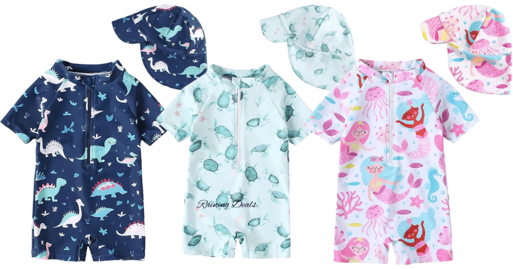 If you have a little beach baby, you NEED one of these 🐢☀️ UV protection swimsuit + matching sun hat and they’re 45% off! The prints are absolutely adorable! (Ad)