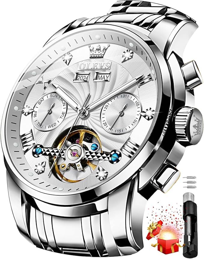 82% 0ff!! OLEVS Watch for Men Automatic Mechanical Luxury Dress Tourbillon Stainless Steel Waterproof Wrist Watches AD