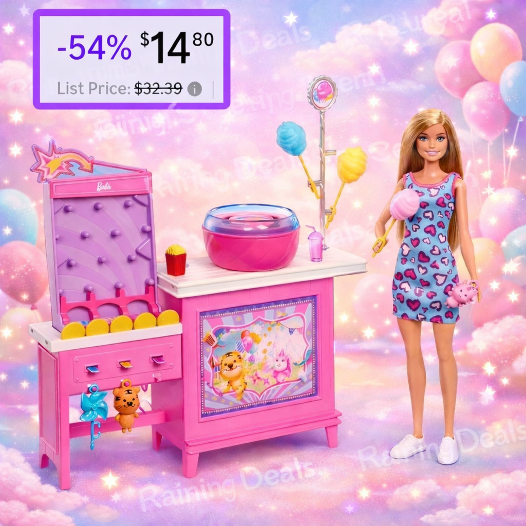 ๐ฐ๐งบ This Barbie Cotton Candy Booth Playset just dropped to $14.80 (54% off)! So cute for Easter baskets or a fun spring surprise. (Ad)