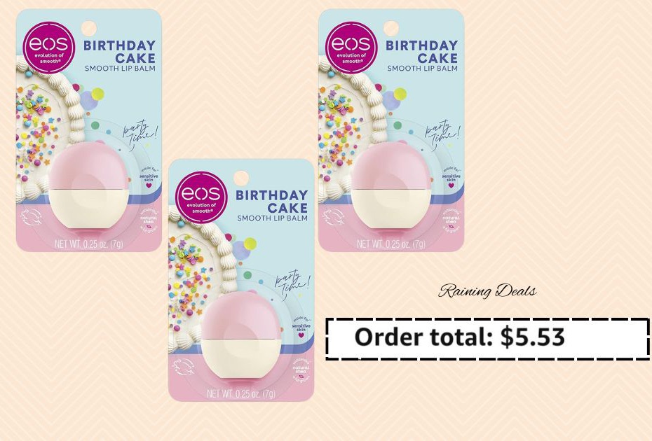 These EOS Birthday Cake lip balms are such a cute little find ππ 3 for just $5.xx total is a steal!! Donβt forget to S&S and then you can cancel after delivery! Perfect for purse, car, gift baskets, or stocking up. (Ad)